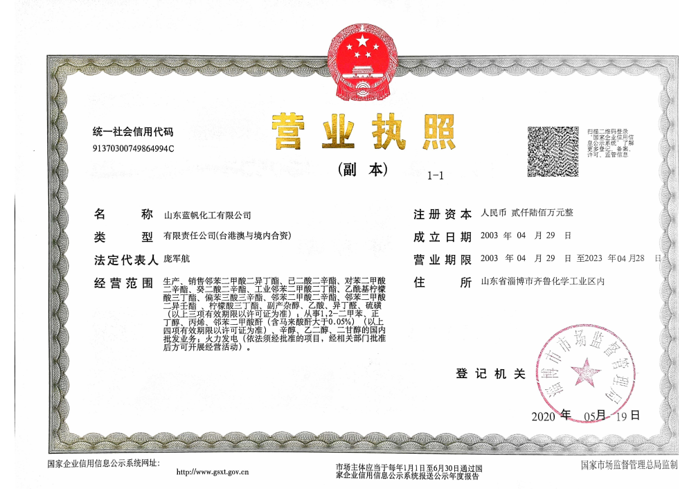 • 淄博朗暉化工有限公司(原山東齊魯增塑劑股份有限公司